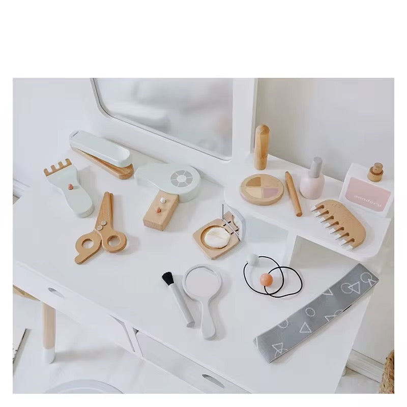მოწესრიგებული და მყუდრო ფორმა კოსმეტიკური შემო , რომელიც იდეალურად ერგება საბავშვო ოტახის დეკორს . მის აქვს ორი უჯრა სათამაშო კოსმეტის ან პატარა ნივთების შესანახად და მრგვალი სარკე , რომელიც ბავშვის უსაფრთხო თამაში ამდიდრებს .