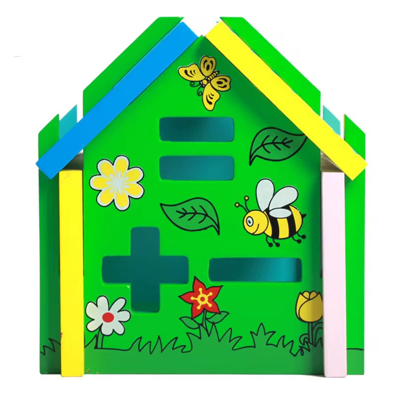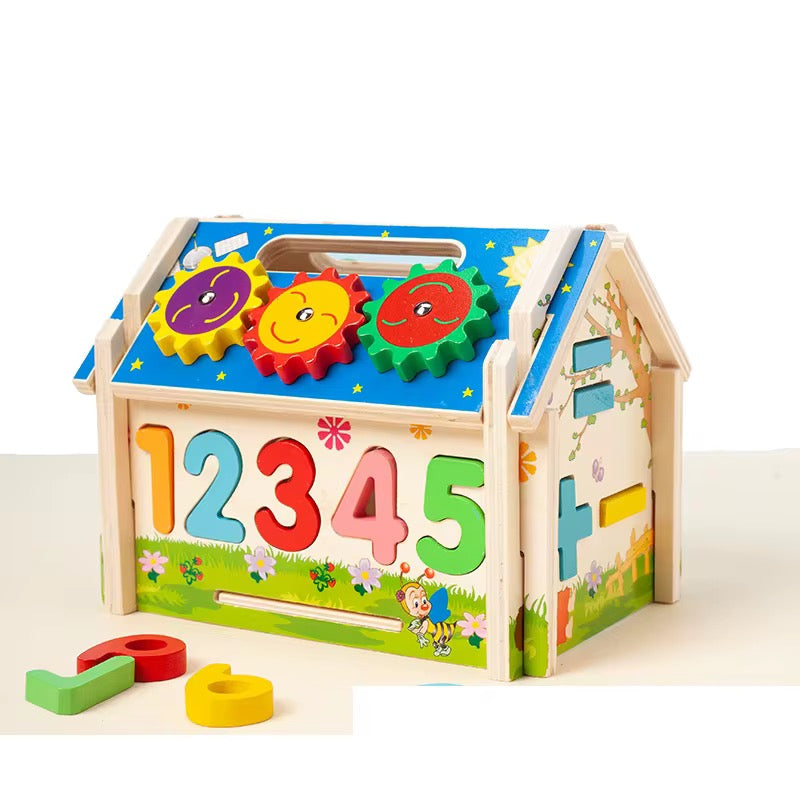 სათამაშო სახლის ფორმა, მოიცავს ციფრებისა და გეომეტრიული ფიგურების ჩასასმელ დეტალებს. თითოეულ გვერდზე განსხვავებული აქტივობაა – ციფრების ამოცნობა, ფორმების შესწავლა, ფერების დამახსოვრება და მარტივი მათემატიკური მოქმედებების შესრულება. სახლი იშლება და ნაწილებად იწყობა, რაც ავითარებს ბავშვის მოტორულ უნარებსა და ლოგიკურ აზროვნებას.