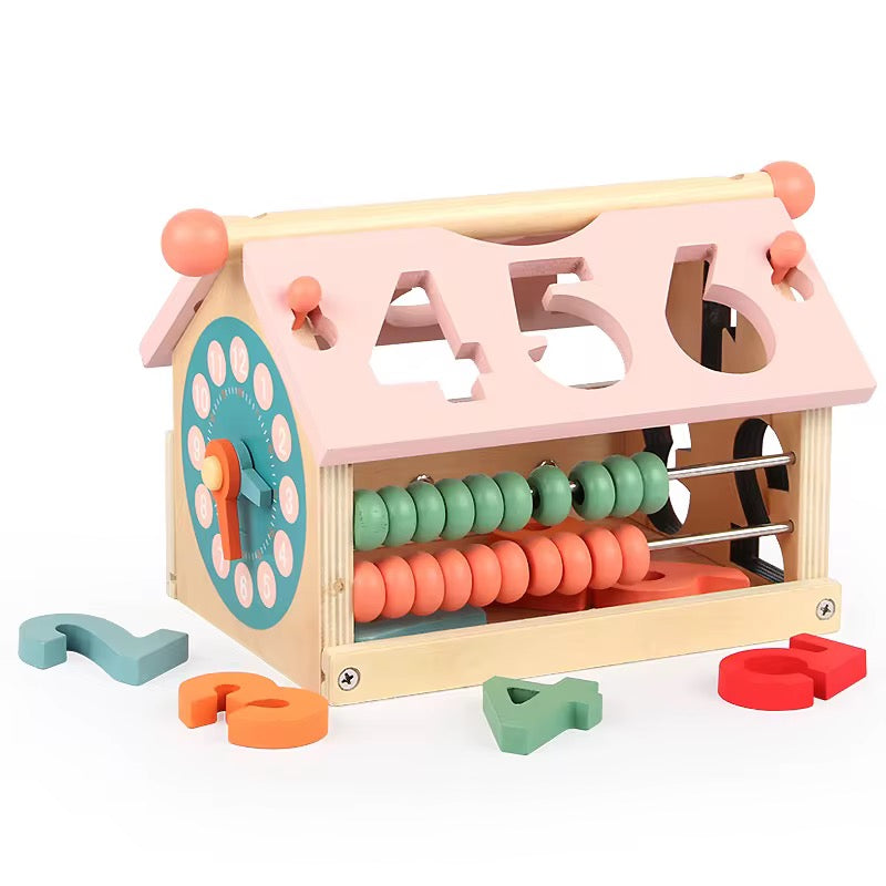 ეს არის მრავალფუნქციური ხის საგანმანათლებლო სათამაშო, რომელიც აერთიანებს რამდენიმე სასწავლო ელემენტს ერთ კომპაქტურ დიზაინში.