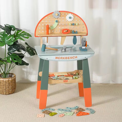 🔨 ხის სათამაშო სამუშაო მაგიდა
