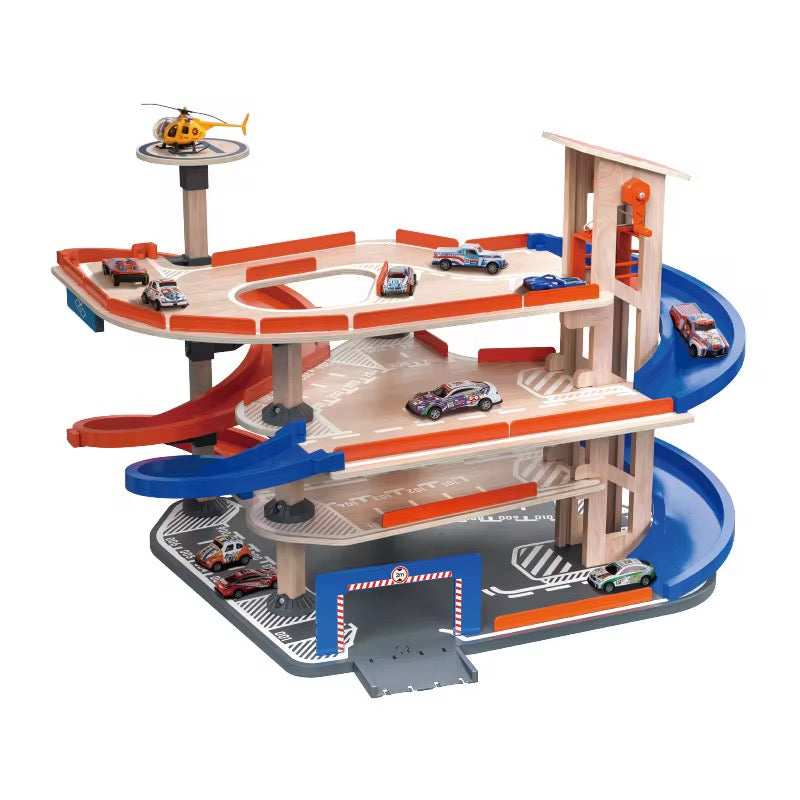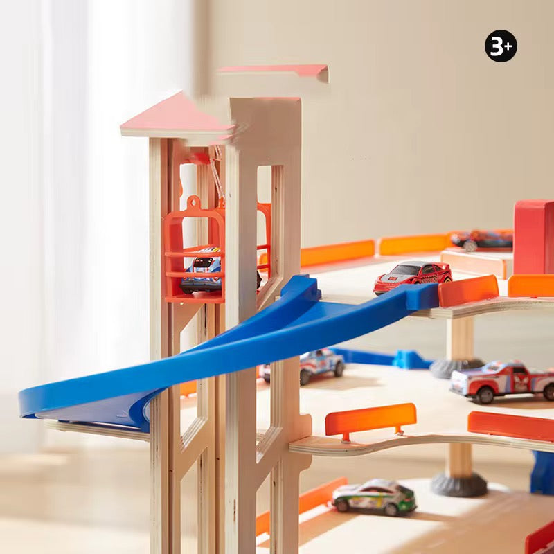 🏎️ მრავალფუნქციური ხის ავტოპარკინგის სათამაშო კომპლექტი