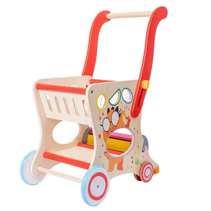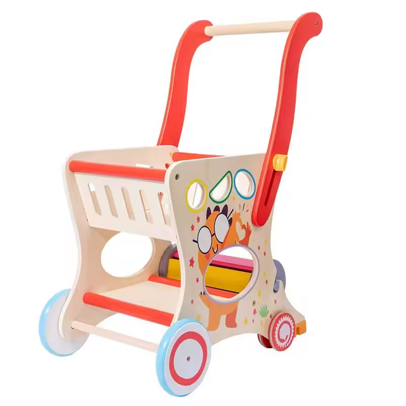 ხის მოსიარულე ეტლი არა მხოლოდ ხელს უწყობს სიარულის სწავლებას, არამედ გართობასაც უზრუნველყოფს ფერადი დიზაინითა და თამაშის ელემენტებით.